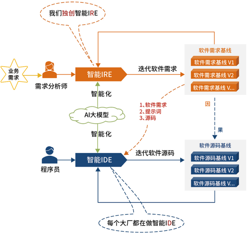 现在我们使用软件逻辑地图,结合AI大模型解析系统程序源码,快速构建软件系统的需求逻辑模型,再也不需要扒代码反向推测需求了,新人可以通过结构化可视化逻辑模型,快速了解业务逻辑而很快形成生产力。
